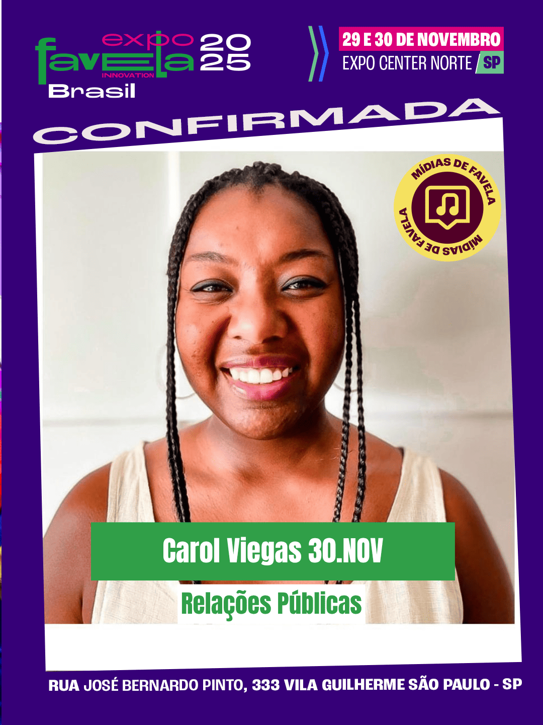 Todas as inscrições serão direcionadas para a Expo Favela Innovation Brasil. Caso o seu Estado realize uma etapa local, suas informações serão enviadas para os organizadores responsáveis!